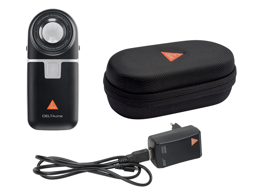 HEINE DELTAONE DERMATOSKOPS.Melns.K-210.28.305.Kabatas dermatoskops neinvazīvai īslaicīgai kontakt- un bezkontakta ādas izmeklēšanai.Nodrošina izcilu krāsu atveidi, pateicoties LEDHQ kvalitātei.Polarizācija ļauj ārstiem strādāt bez atspīduma un traucējošām atstarošanām.Apvieno diagnostisko precizitāti un mobilitāti.Iespējas.10x palielinājums.Ārkārtīgi ass attēls ar jauno ahromātisko HEINE optisko sistēmu.Patiesais redzes lauks Ø 21mm (lēca 22mm).3 gaismas intensitātes līmeņi.Savienojums ar bezmaksas HEINE DERM App.Ātra pāreja no kontakt- uz bezkontakta izmeklēšanas.Autoklāvējama kontaktplāksne ar mērogu.Dioptriju kompensācija.Pārslēgšanas funkcija: pāreja starp polarizētu un nepolarizētu apgaismojumu ar pogas pieskārienu.Uzlādējams Li-ion akumulators.Komplektā.Kontaktplāksne ar mērogu, uzlādējams Li-ion akumulators, USB barošanas adapteris un maciņš ar rāvējslēdzēju.