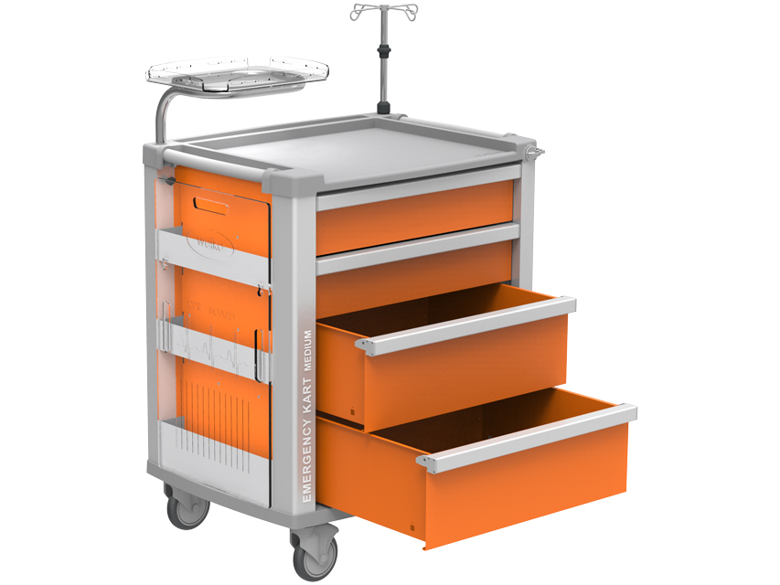 AVĀRIJAS VIDĒJS KARTS - 4 atvilktnes - oranžs Izmērs: 804 x 616 xh 975 mmAugstas kvalitātes alumīnija avārijas ratiņi ar izcilām īpašībām. - darba virsma no augstas veiktspējas kopolimēra, ar perimetru malu šķidruma aizturēšanai - ekstrudēts alumīnija rāmis, ar virspusēju sudraba antioksidantu apstrādi, kas piedāvā vairāk vieglums, izturība un uzticamība - ergonomiski nerūsējošā tērauda rokturi, kas uzstādīti abās pusēs ērtai lietošanai - atvilktnes konstrukcija iebūvēta tērauda loksnēs,epoksīda pulvera pārklājums- pilnībā izvelkamas bīdāmās atvilktnes- maināma atvilktņu pozīcija- alumīnija atvilktņu rokturis ar “āķa/atkabināšanas” sistēmu, lai novērstu nejaušu atvilktņu atvēršanu- liela atvilktņu ietilpība- centralizēta bloķēšanas sistēma ar vienreiz lietojamām blīvēm- 6 integrētas sānu kabatas (3 +3) pudeļu vai mazu priekšmetu turēšanai- grozāmie riteņi Ø 125 mm (divi ar bremzēm) termoplastiskā gumijā ar vītņu aizsargiem, rumba uz precīziem lodīšu gultņiem