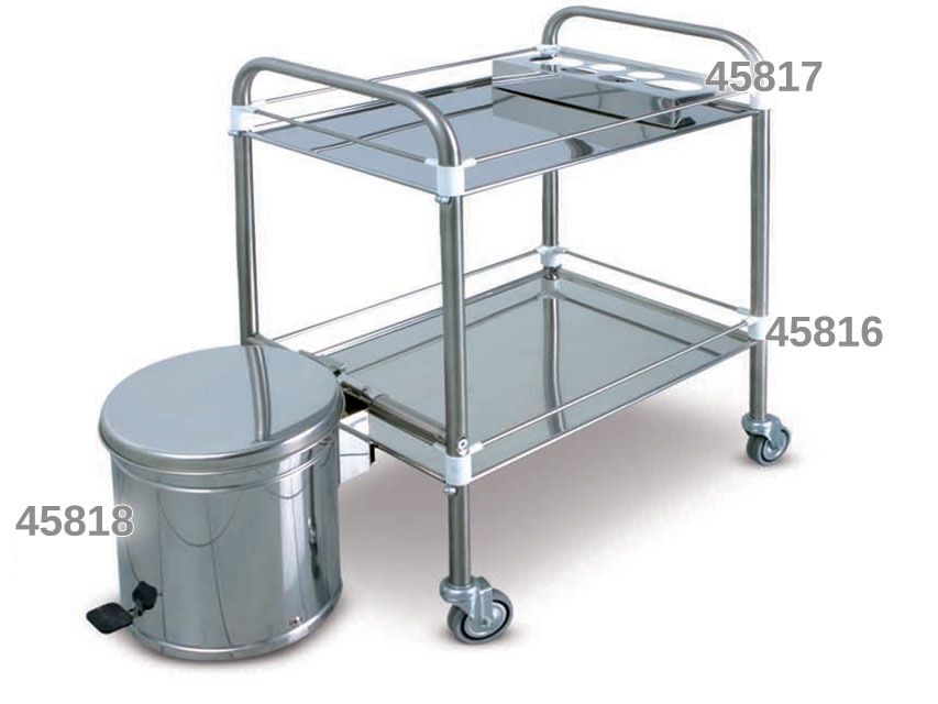 Nerūsējošā tērauda ratiņi, kas uzstādīti uz ritenīšiem Ø 80 mm.Maksimālā ratiņu slodze: 60 kg.Piegādāts komplektā.Ražots Itālijā.Izmēri: 70 x 50 xh 80 cmVar pievienot sekojošus piederumus:• 45816 - sānu margu komplekts (1 plauktam) • 45817 - pudeļu plaukts• 45818 - atkritumu tvertne