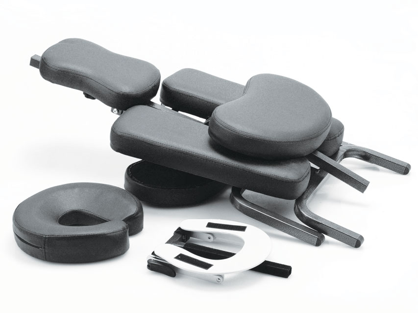 Ērts salokāms masāžas krēsls ideāli piemērots fizikālās terapijas un labsajūtas centriem. Izgatavots no PVC vinila ar 5-6 cm putu biezumu. Metāla rāmis.