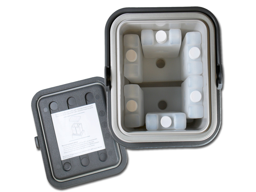 Kompakts, izturīgs, ar speciālu izolāciju, kas izgatavota no augsta blīvuma PU putām, piemērots vakcīnu transportēšanai. Komplektā ar 8 tukšiem 400 ml ledus rezervuāriem, kas ir piemēroti, lai uzturētu 8 ° C temperatūru 40 stundas pie ārējās temperatūras 43 ° C bez atvēršanas. Korpuss un vāks ar starplikām labākai izolācijai. • Izmērs: 26 x 22 x 32 cm. • Ražots Itālijā.