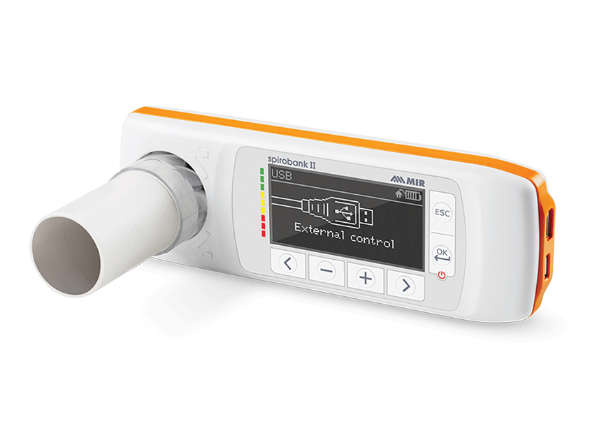 Spirometrs ar atmiņas ietilpību 10.000 testu veikšanai, monohromatisks šķidro kristālu displejs un 6 membrānas tastatūras pogas. Barošanas avots: 7 V-1100 mA baterijas ar autonomiju apmēram 50 stundu nepārtrauktai izmantošanai, uzlādējamas, izmantojot USB-portu. - Savienojums ar USB 2.1 kabeli vai bezvadu Bluetooth 2.0. - Iekšējais temperatūras devējs automātiskiem BTPS pārveidojumiem. - Augsta grafiskā displeja izšķirtspēja. - Automātisks veselas spirometrijas sesijas ieraksts, ieskaitot labāko testu. - USB kabelis, apvalks pārnēsāšanai, CD instrukcija (GB, FR, IT, ES, DE, PT) un programatūra.