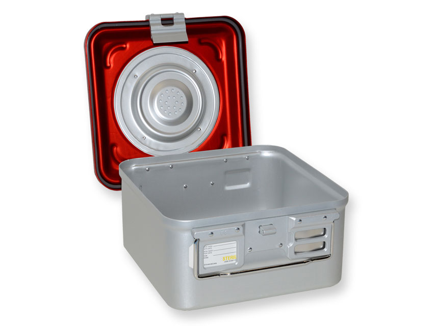 Barjeru sistēmas tvertne ar vārstu un neperforētu dibenu. Barjeru sistēma ir ieteicama, ja tiek pieprasīta nepārtraukta konteineru izmantošana, tā ļauj izvairīties no filtra nomaiņas. Sterilizācijas laikā atveras vārsts, lai varētu izkļūt no tvaika.• Mazs modelis: 285 x 280 mm• Augstums: 150 mm• Neperforēts dibens• Barjeru sistēma ar vienu vārstu• Krāsa: sarkanaVisi konteineri ir autoklāvējami pie maksimāli 134°C un 2,2 bāriem. PĀRDOD VĀCIJĀ.