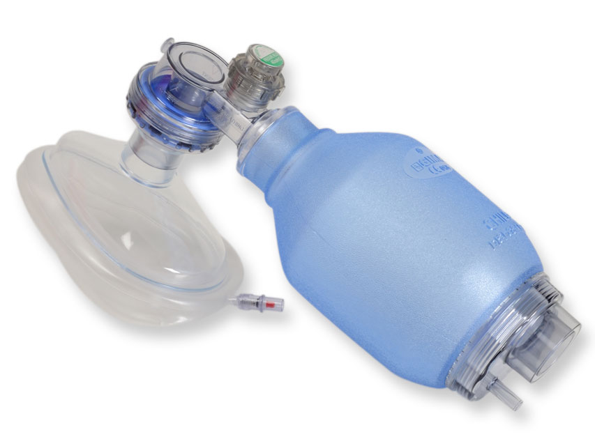 PVC AMBU maisiņi - pieaugušajiem.Komplektā ar vienreizlietojamu masku Nr. 5.Tilpums: 1600 ml.Vienreizlietojami AMBU maisiņi ar vienreizlietojamu masku, bez atgriešanas membrānas vārsta un bez PEEP vārsta savienojuma.PVC vienreizlietojama, caurspīdīga maska, kas veidota tā, lai nodrošinātu perfektu saķeri ar pacienta seju.Bez lateksa.