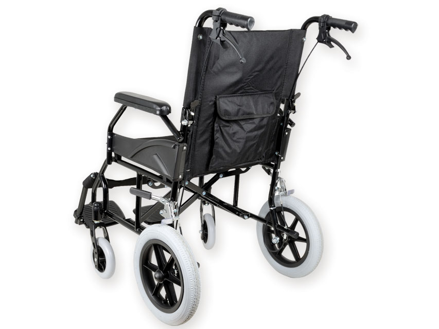 TRANSIT RATINKRĒSLS - 46 cm sēdeklis - melns audums- dubults šķērsstienis- fiksēts roku balsts, PVC spilventiņš- fiksēts kāju balsts, paceļama plāksne, ar kāju siksnu- 15 cm (6) cietie priekšējie riteņi- 30 cm (12) pneimatiskie aizmugurējie riteņi- bloķēšanas bremzes uz aizmugurējiem riteņiem- rokturi bremzes aizmugurējiem riteņiem- nolokāma aizmugure- kabata aizmugurēTehniskās specifikācijas• Kopējais platums: 63 cm• Salocīti izmēri: -• Sēdekļa platums: 46 cm• Aizmugurējā riteņa diametrs: 53 cm• Priekšējā riteņa diametrs: 15 cm• Sēdekļa augstums: 49 cm• Kopējais ratiņkrēsla augstums: 91 cm• Kopējais ratiņkrēsla garums: -• Atzveltnes augstums: -• Sēdekļa dziļums: -• Maksimālā slodze: 100 kg• Komplekta izmērs: 76 x 30 x 76 cm• Neto svars: 14 Kg• Bruto svars: 16,3 Kg