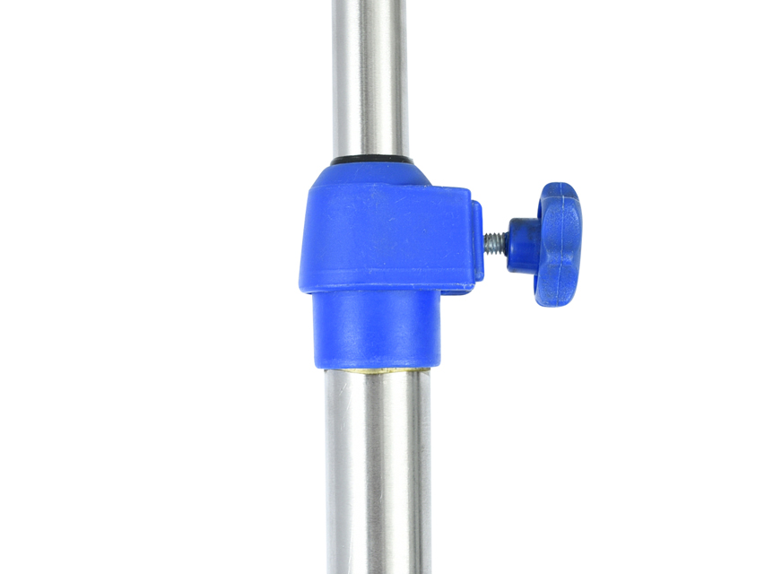 Nerūsējošā tērauda AISI 202 IV statīvs.Regulējams augstums: 135-215 cm.Svars: 3,5 Kg.Pamatnes materiāls: alumīnijs.Āķu skaits un materiāls: 4 (nerūsējošais tērauds).Slodze uz vienu āķi: 3 Kg.Kopējā slodze: 12 Kg.Ritentiņš ar bremzēm: 1.