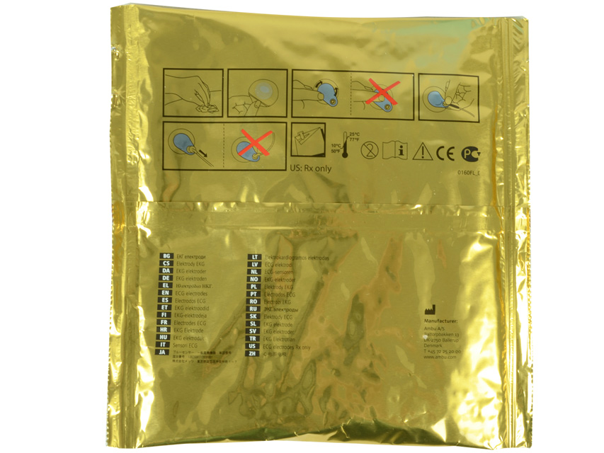 AMBU BLUE SENSOR VL.augstas vadītspējas šķidrais gēls.tūlītējas un ilgstošas līmes kombinācija.elpojošs mikroporains materiāls.unikāls kompensēts savienotājs.augstas kvalitātes Ag / AgCl.Blue Sensor sensori ir visefektīvākais un ekonomiskākais elektrodu klāsts pasaulē.Tie spēj piedāvāt nepārspējamus darba rādījumus, lietotāja ērtības un pacienta komfortu.Ideāla Blue Sensor elektrodu saķere nodrošina, ka darbplūsmu nepārtrauc viltus trauksmes un netiek tērēts laiks problēmu risināšanai.Precīza uzraudzība un skaidri signāli: Blue Sensor elektrodi nodrošina ātru un uzticamu izsekošanu bez nepieciešamības ādas sagatavošanai, palielinot pacienta komfortu.Mēs zinām, ka ātra un precīza uzraudzība, kas sniedz skaidru priekšstatu par pacienta sirdsdarbību, ir būtiska precīzai diagnozei.Tehniskās īpašības.• AMBU kods: VL-00-S / 25.• Apraksts: BLUE SENSOR VL.• Pielietojums: Ilgtermiņa.• Gēla veids: Šķidrums.• Atbalsta materiāls: Mikroporains.• Izmēri (mm): 72 x 68.• Forma: Apaļa ar kompensatoru.• Produkta kalpošanas laiks * (mēneši): 24.• Radiācijas caurlaidība: NĒ.• Savienotāja veids: SNAP.• Minimālais pasūtījums: Iepakojumā 25 gab.• Iepakojums: 1 AMBU maiss ar 25 gab.* Ar produkta kalpošanas laiku mēs domājam maksimālo ražošanas laiku.GIMA produkta kalpošanas laiks būs no 90% līdz 50% no maksimālā kalpošanas laika.Tehniskās specifikācijas.• AMBU kods: VL-00-S / 25.• Apraksts: BLUE SENSOR VL.• Pielietojums: ilgtermiņa.• Gēla tips: mitrs.• Pamatmateriāls: mikroporains.• Izmērs (mm): 72 x 68.• Forma: apaļa ar nobīdi.• Apvalka dzīve * (mēneši): 24.• Radiolucent: NĒ.• Savienotāja tips: SNAP.