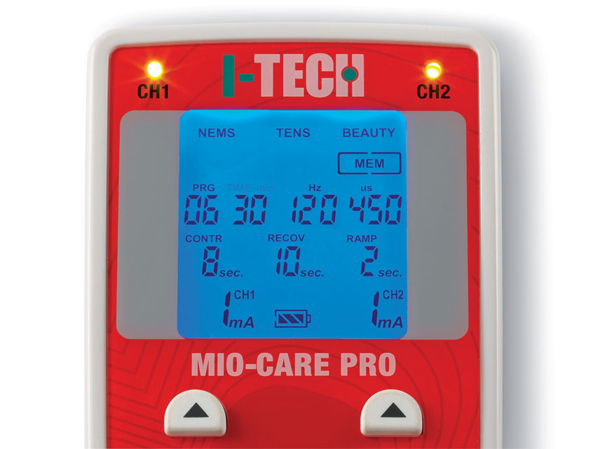 MIO-CARE PRO 2 CHANNEL.63 programmas (14 medicīniskās + 15 skaistumkopšanas + 21 fitnesa + 13 bezmaksas atmiņas).2 neatkarīgi kanāli.Stimulators.Kompensēts divfāzu kvadrātveida vilnis: novērš bīstamu polarizācijas termisko efektu.Viegli lietojama, digitālā tastatūra.Atlikušā terapija grafiskajā displejā redzama laika un programmu instrukcija.Iekšējais uzlādējams akumulators.Maksimālā intensitāte 200 mAh.Atbilstība 93/42/EEC MDD.Piegādāts pārnēsāšanas somā ar 2 savienojuma kabeļiem ar sadalītājiem, lietotāja rokasgrāmata (GB, FR, IT, DE, ES), 8 līmlentes, iekšējais uzlādējams akumulators ar akumulatoru lādētāju.Izmēri: 60 x 135 x 19 mm.