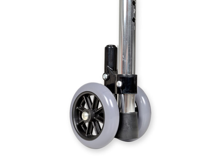 Izgatavots no vieglas alumīnija caurules, 2 priekšējie grozāmie riteņi, 2 aizmugurējie riteņi ar aizturi, ar putu rokturiem.Izmērs 55 X 65 cm salokāms ar regulējamu augstumu (83 X 93 cm).Tehniskās specifikācijas• Svars: 3,5 kg• Slodze: 100 kg